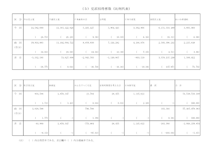 国民民主党は4倍増の28議席に積み増した。日本維新の会は大阪全19選挙区で議席を獲得したが、得票数を減らし、関西以外の選挙区で苦戦を強いられ、6議席減の38議席となった。
