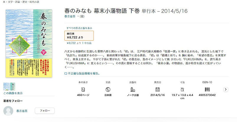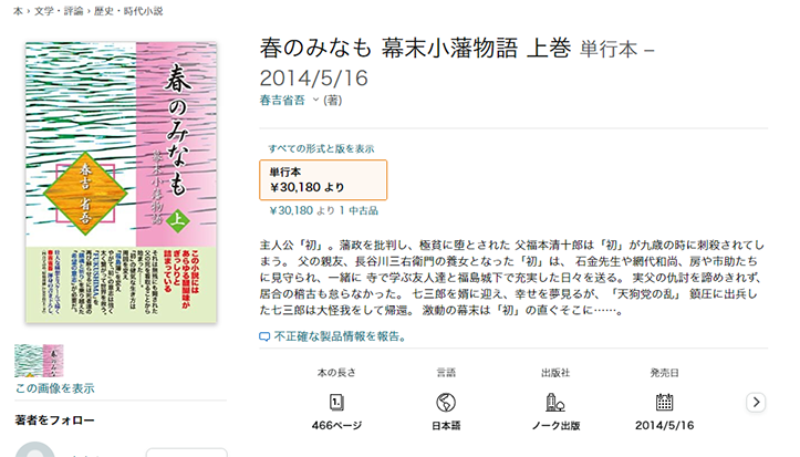 それにしても、この値付けはどういうことだ!!   出版元であるノーク出版、そして著者である「春吉省吾」が驚いた。本来、古本業者が、コレクター商品として高額価格を付けることはあるが、現に、わが社の2つのネットショップで販売している商品だ。この古本業者はあまりにひどい。そしてアマゾンは何の基準でこんなに高額金額を許可したのか、その基準を聞きたいところだ。